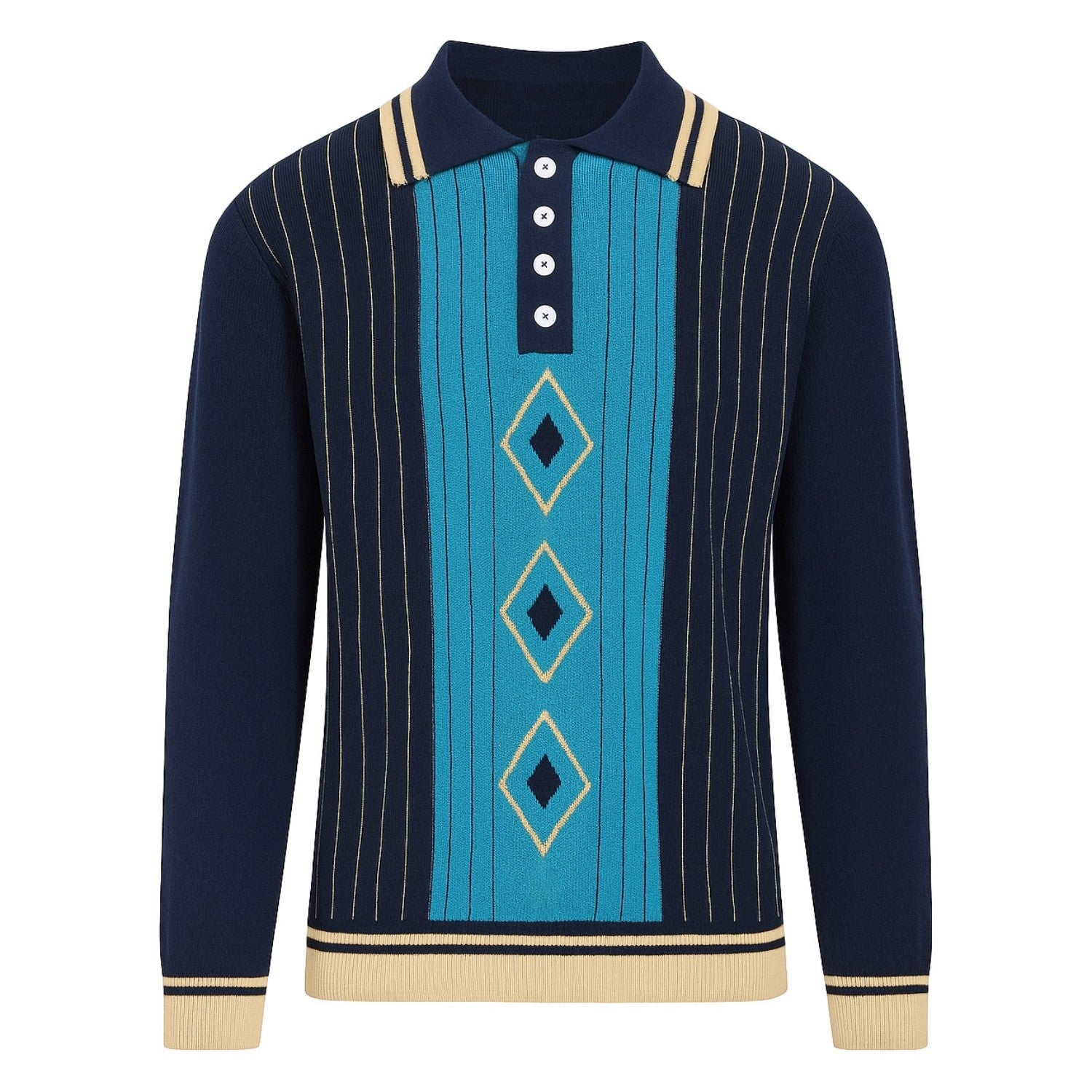 Men's Retro Striped Navy Blue Knitted Polo