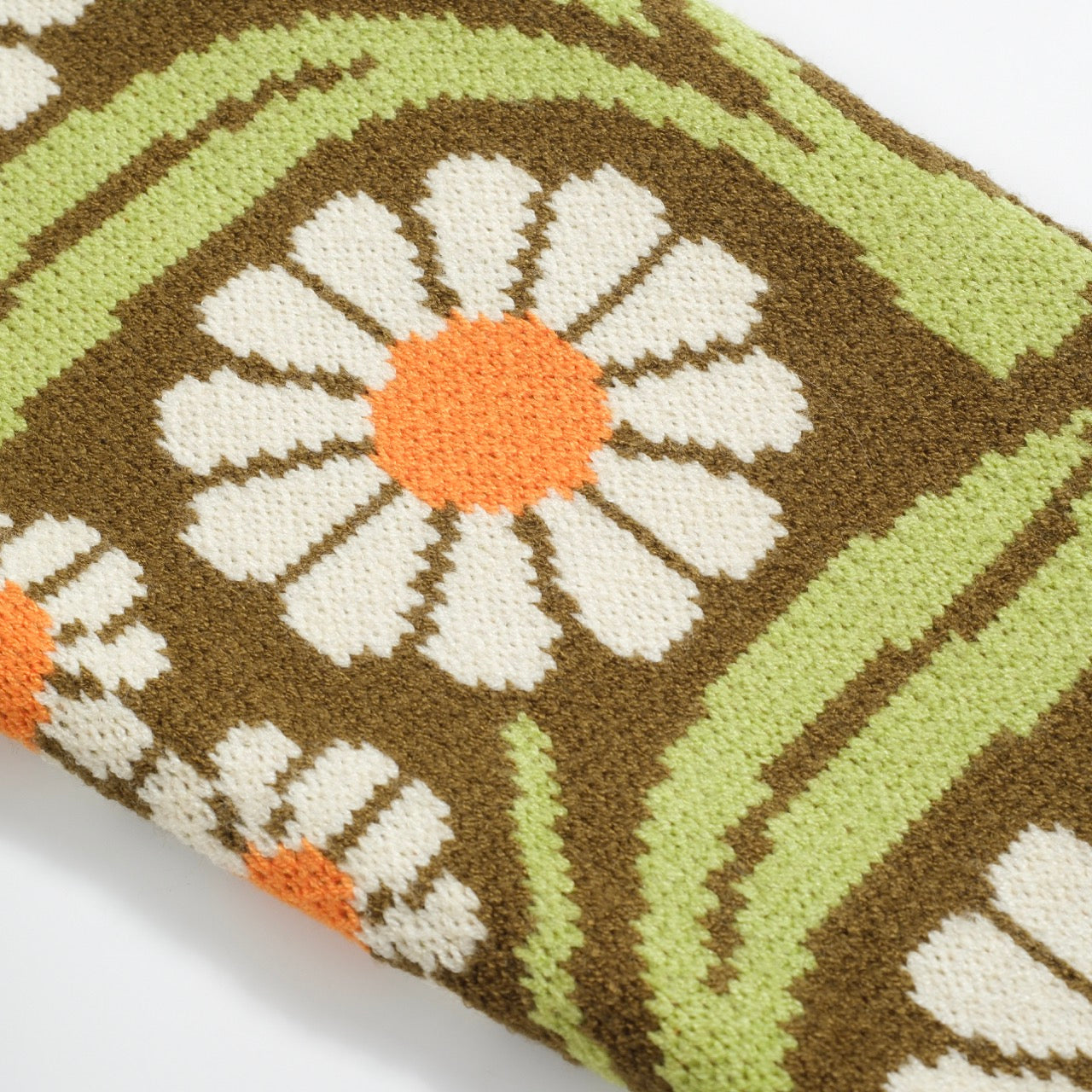 A bold floral zip-up cardigan with a 70s MOD spirit—showcasing daisies in the spotlight.