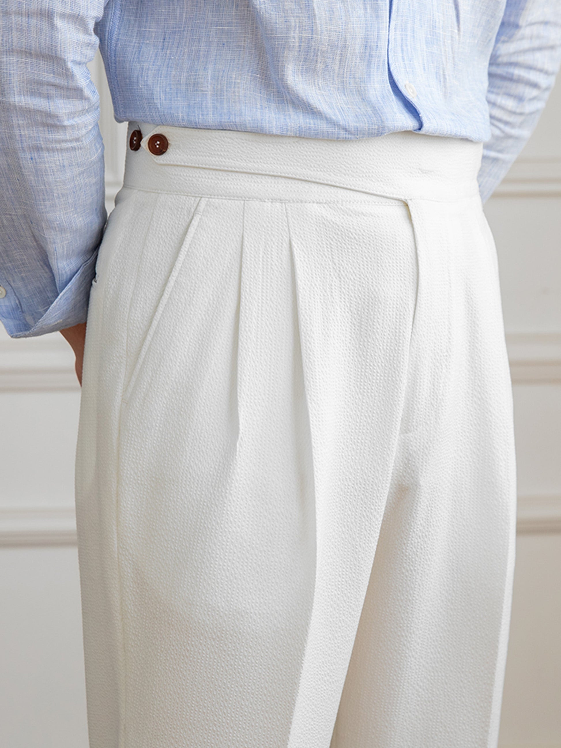 Straight Trousers with Double Pleats in Seersucker Moneglia