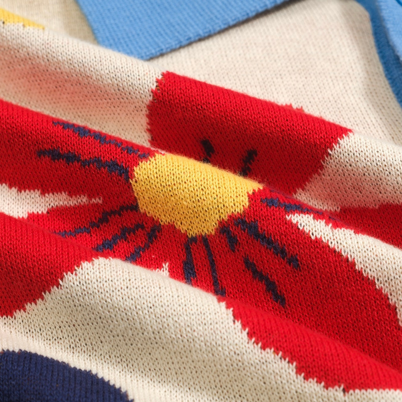 Vintage Knitted Floral Apricot Cardigan for Men