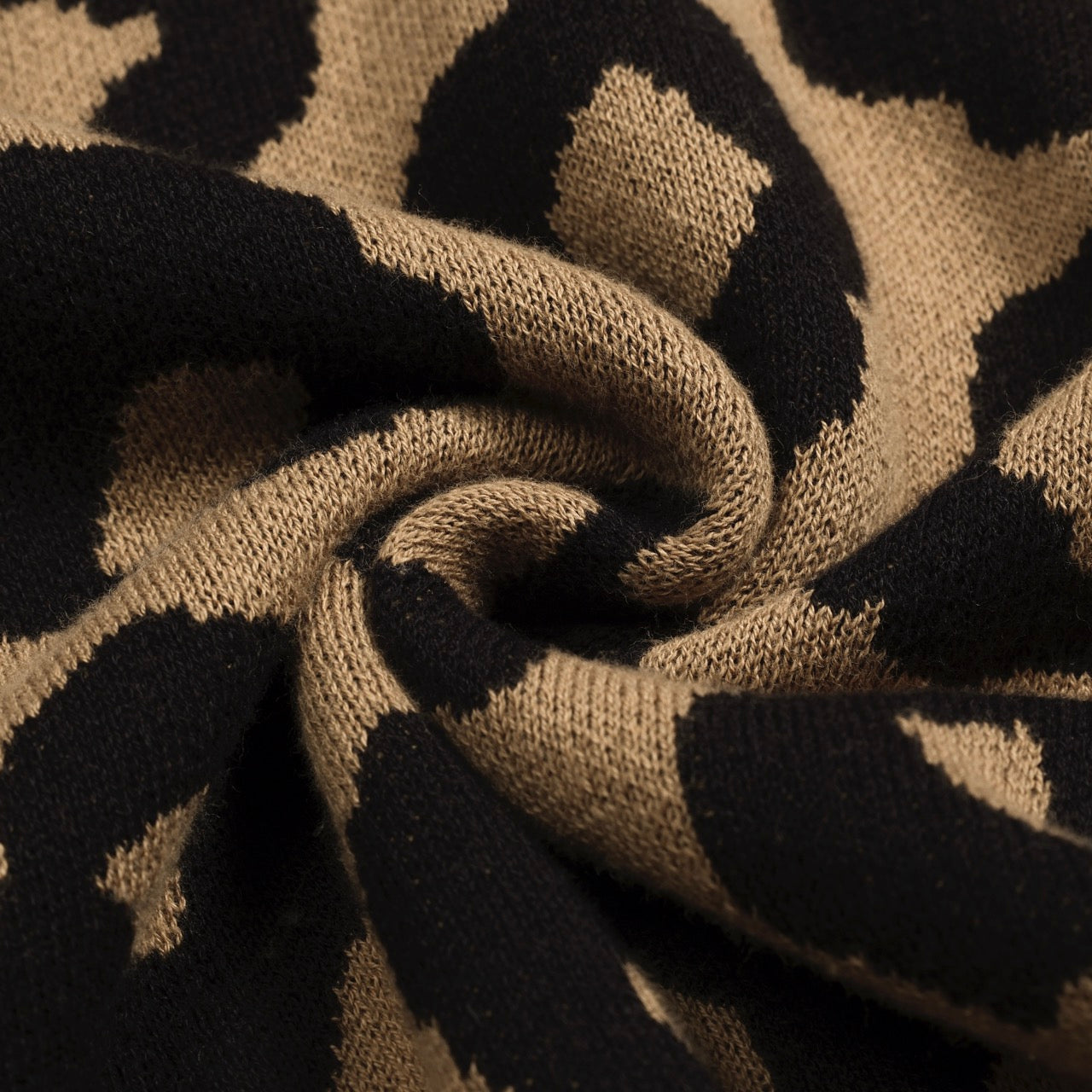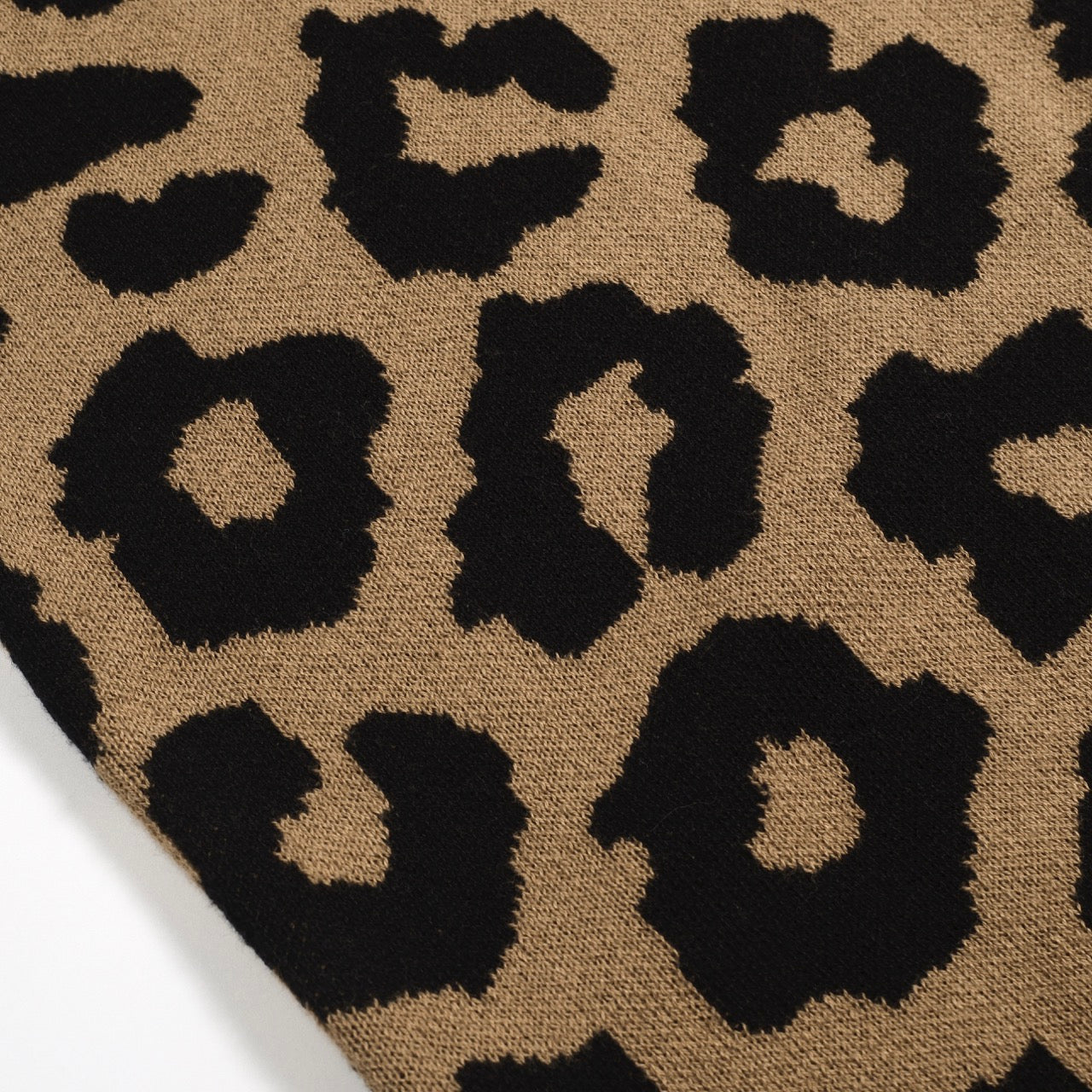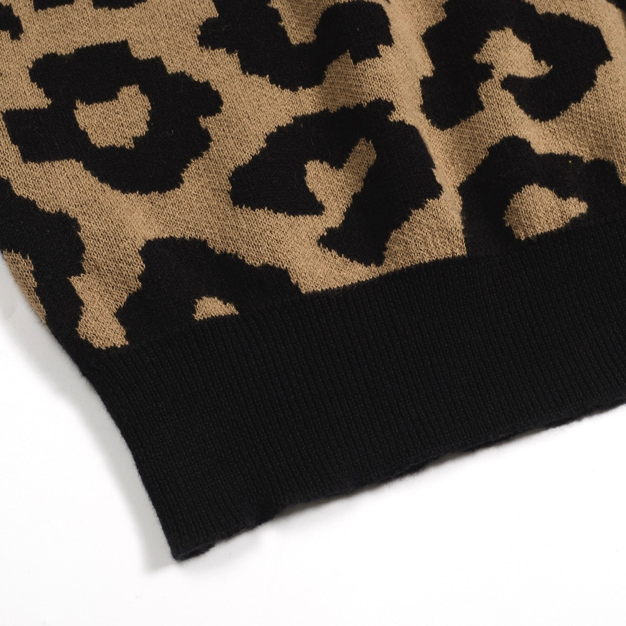 Vintage knitted jacquard gilet in brown leopard print for men