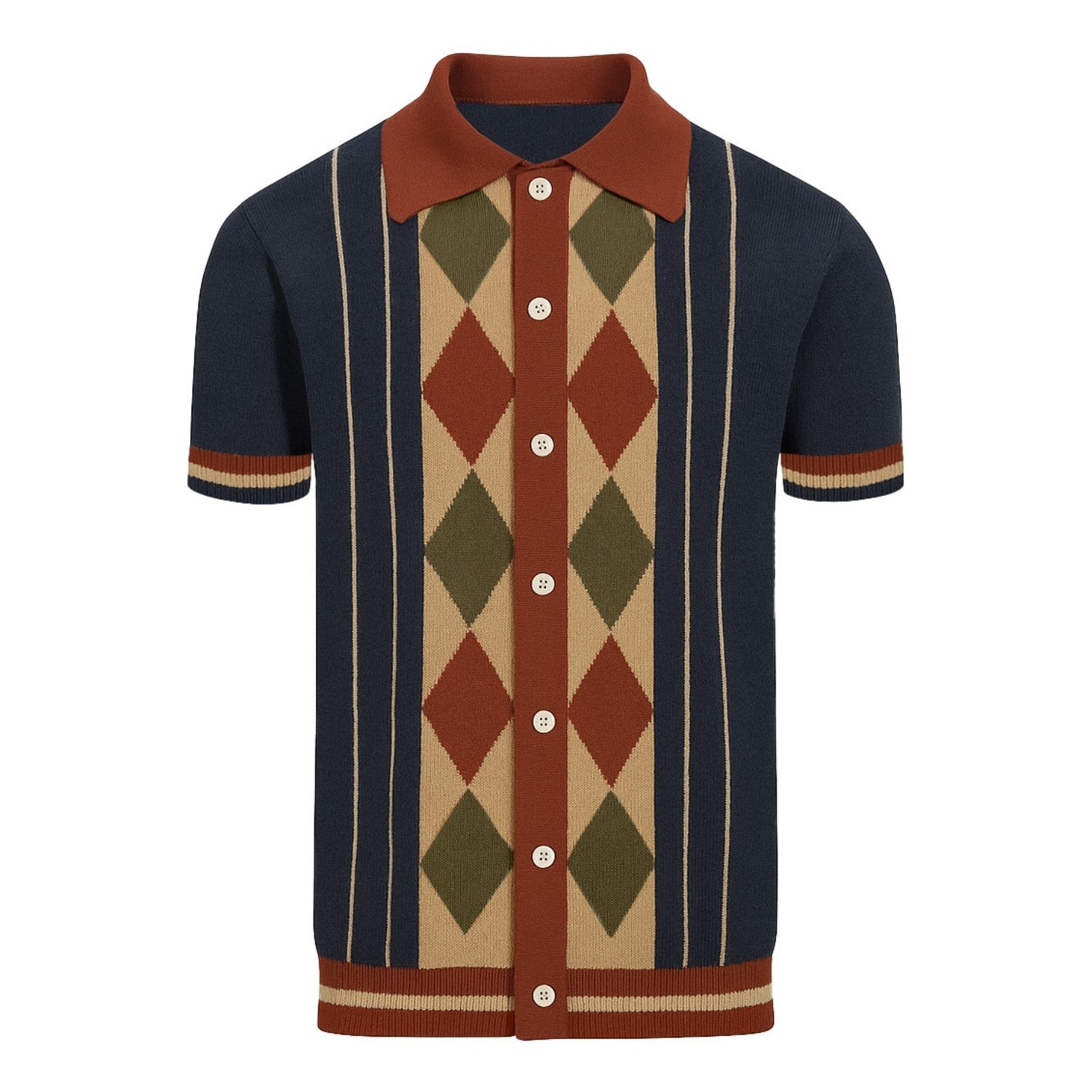 Vintage navy blue striped and diamond check cardigan for men