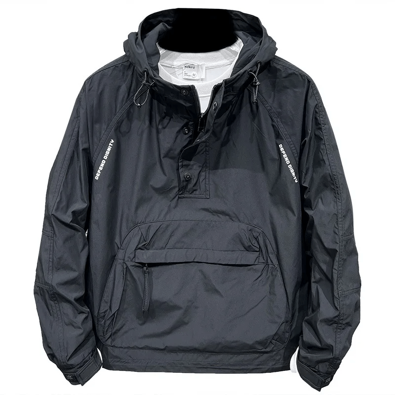 Designed for the urban explorer, this half-zip hooded work jacket combines functionality and stylish design. Its polyester fabric offers durability for everyday use while maintaining a lightweight feel essential for active lifestyles. Perfect for the modern craftsman or urban style enthusiast, this jacket becomes an indispensable element of a wardrobe that is both practical and stylish.